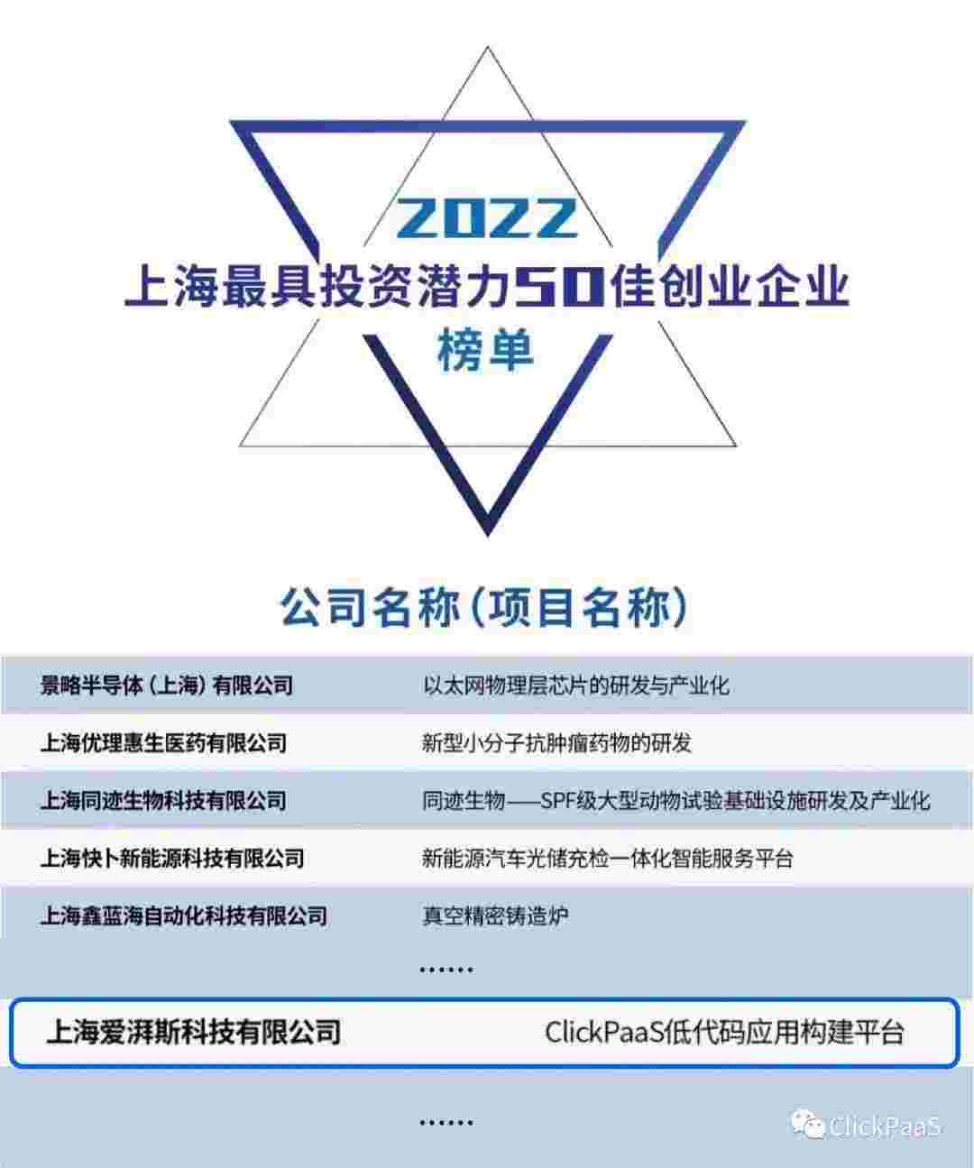沃钱包 作为国内低代码PaaS平台的领军企业,,,与120家创企入围角逐。。。期间接受了来自德同资本、、、、领中资本等知名投资机构的10位投资人组成专家评委团的背靠背盲选。。。。并最终入围“2022上海最具投资潜力50佳创业企业”榜单,,,,被列入“上海市重点培育创业企业库”。。。。