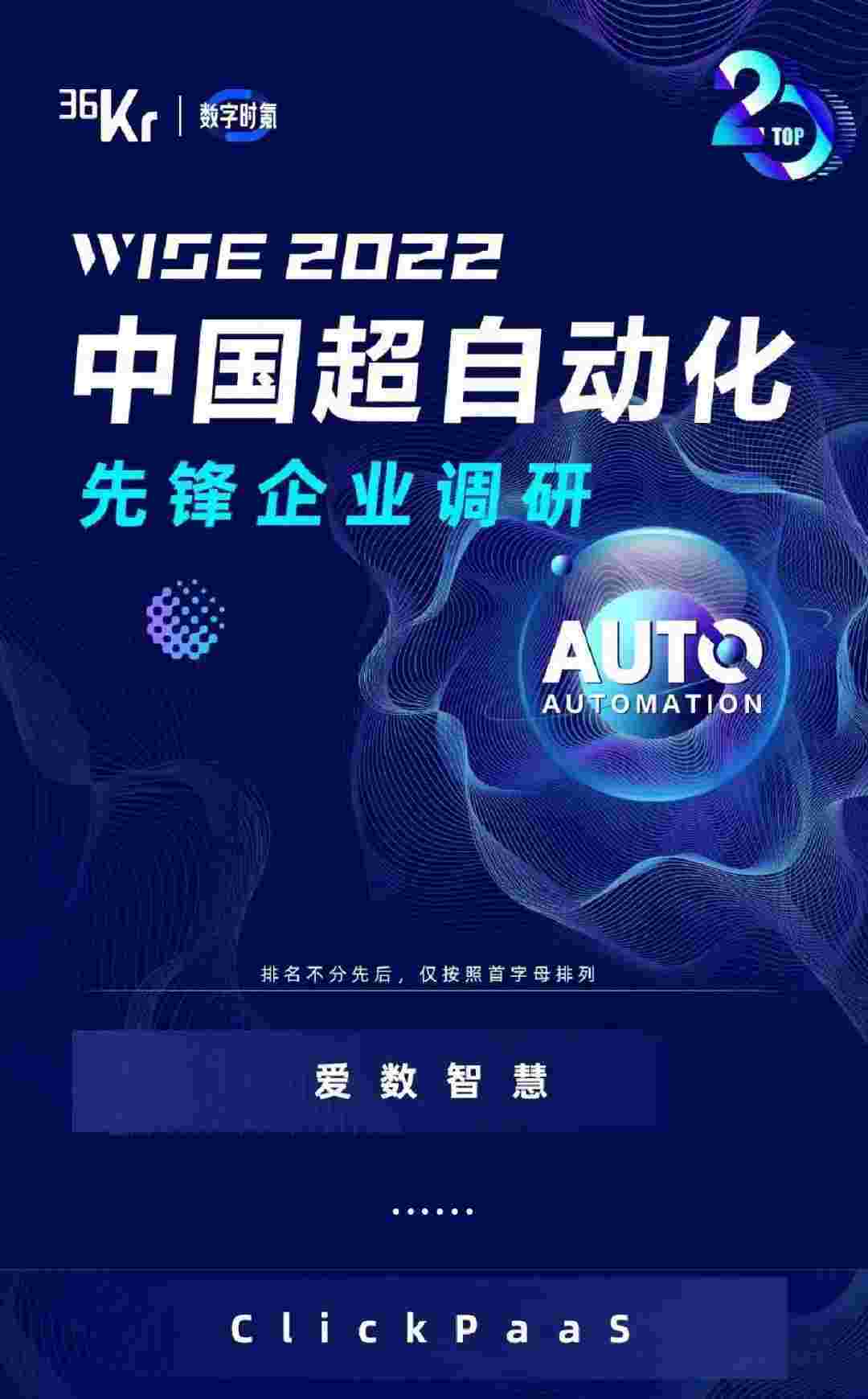 8月10日,,由36Kr主办的WISE 2022中国超自动化峰会在杭州成功举办。。沃钱包作为国内低代码PaaS平台的领军企业,,,,凭借过硬的技术实力和优质的产品能力,,在本次峰会中实力入选「2022年中国超自动化先锋企业」20强。。。